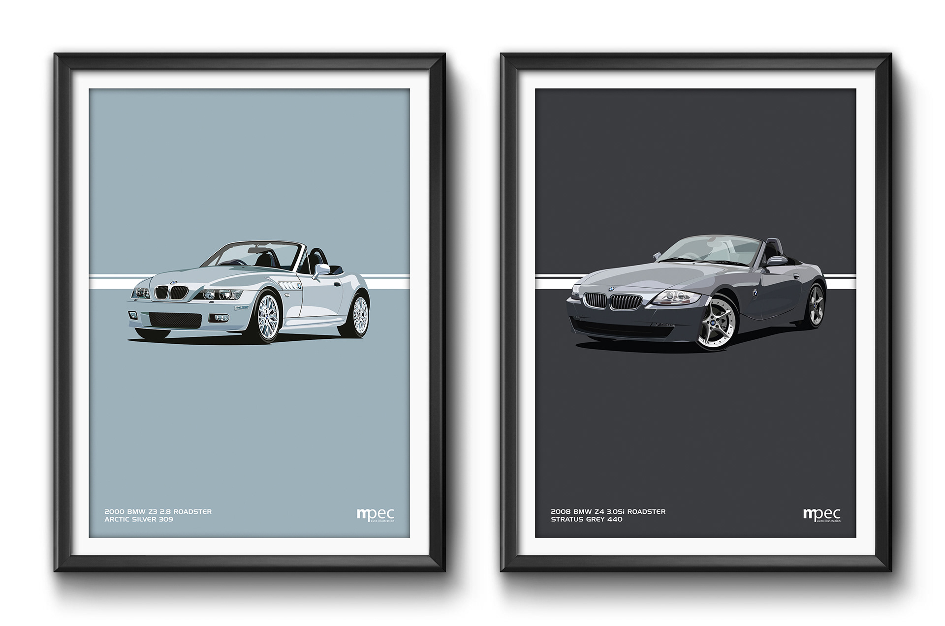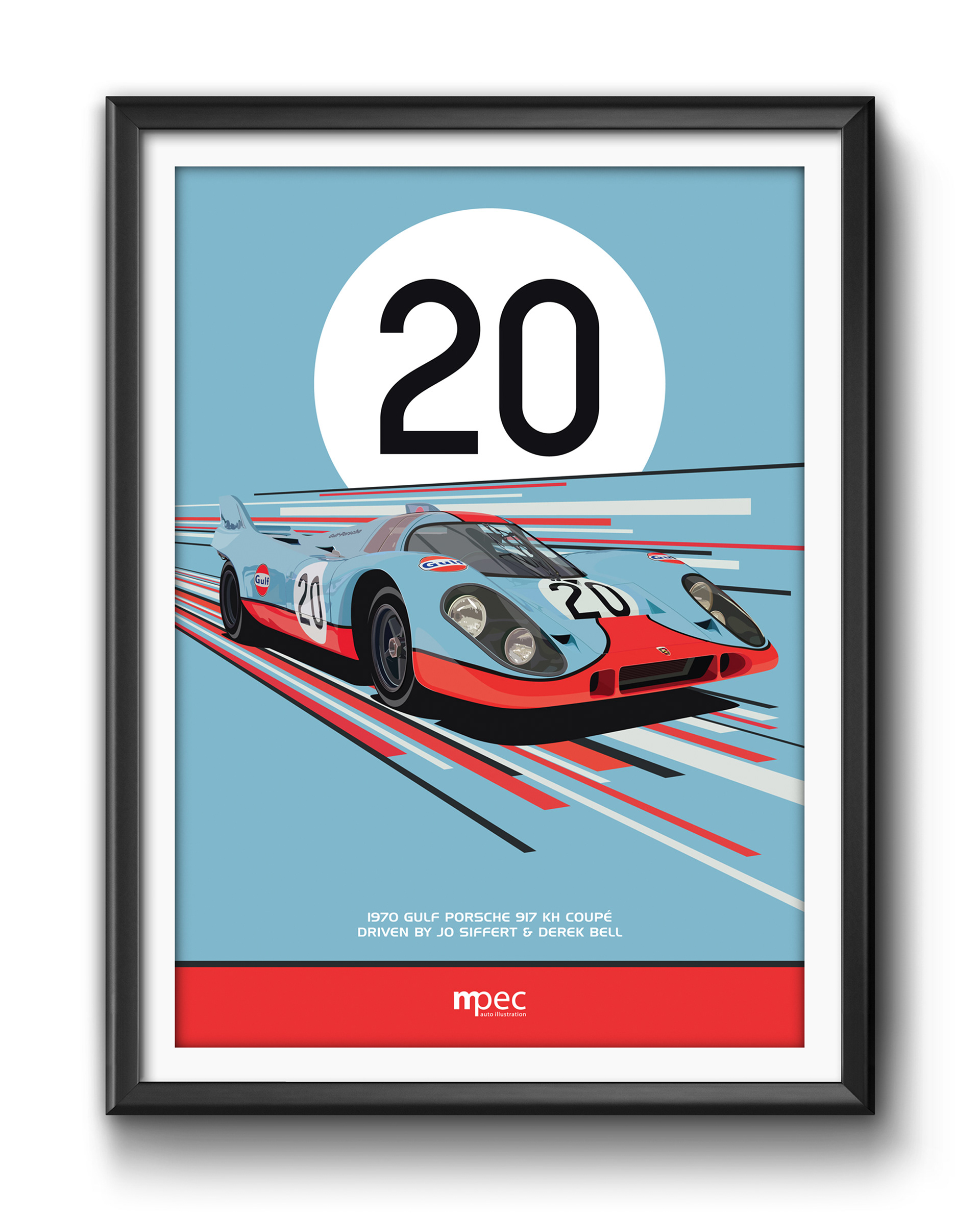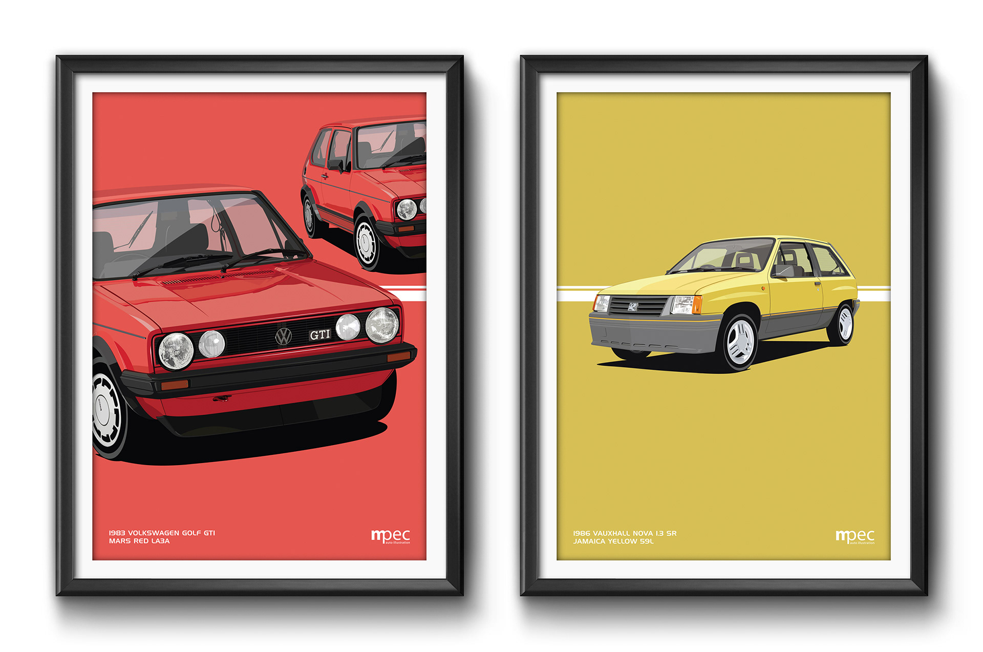 Combining my graphic design skills with my passion for classic cars, I create poster artworks to sell through my website www.mpecautoillustrations.com. Each car is drawn in Illustrator using flat colours to create highlights and shadows generating a style and distinctiveness. I use the main colour from the car being illustrated to give a boldness to the background and for road cars I incorporate a central double line to set the design.
